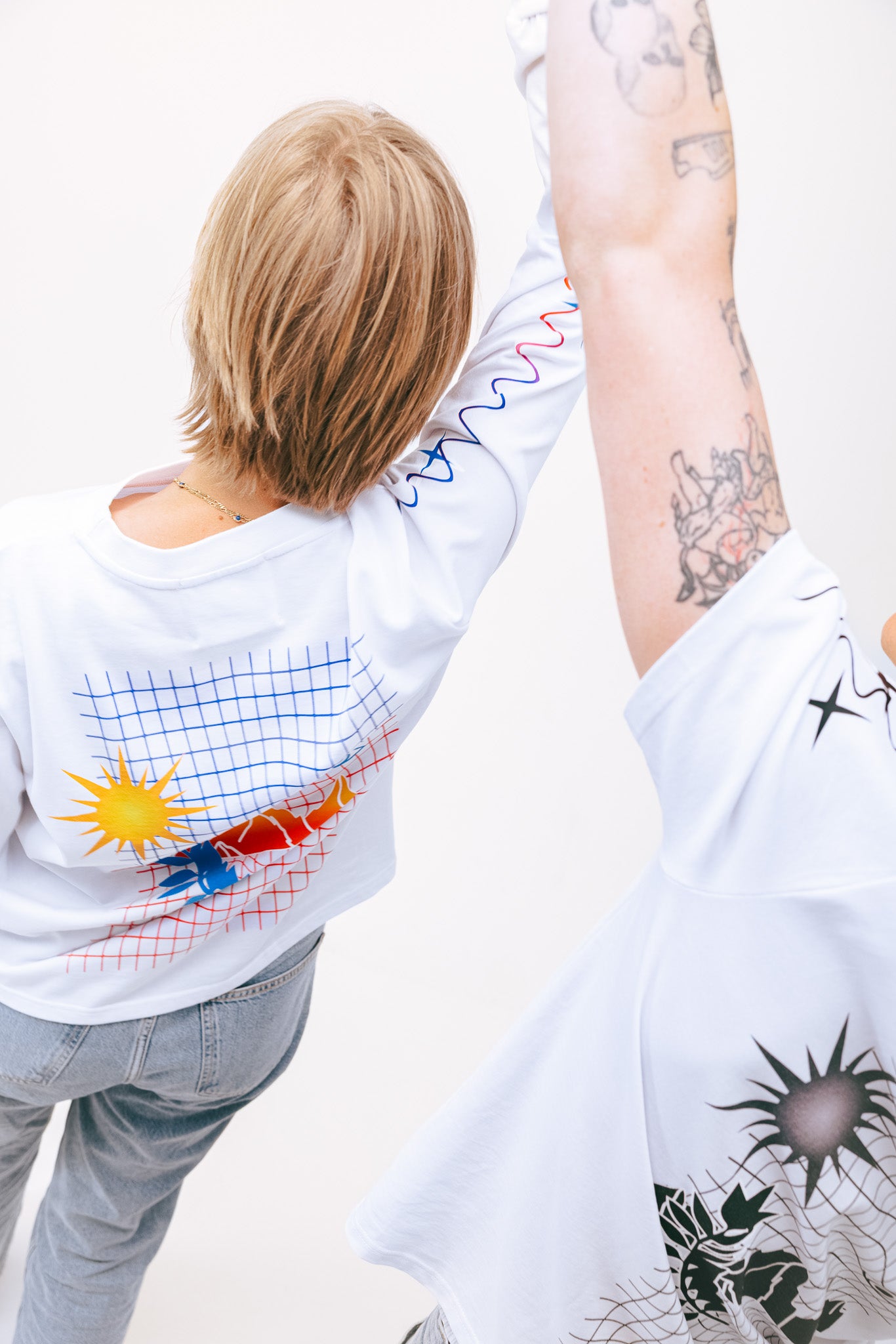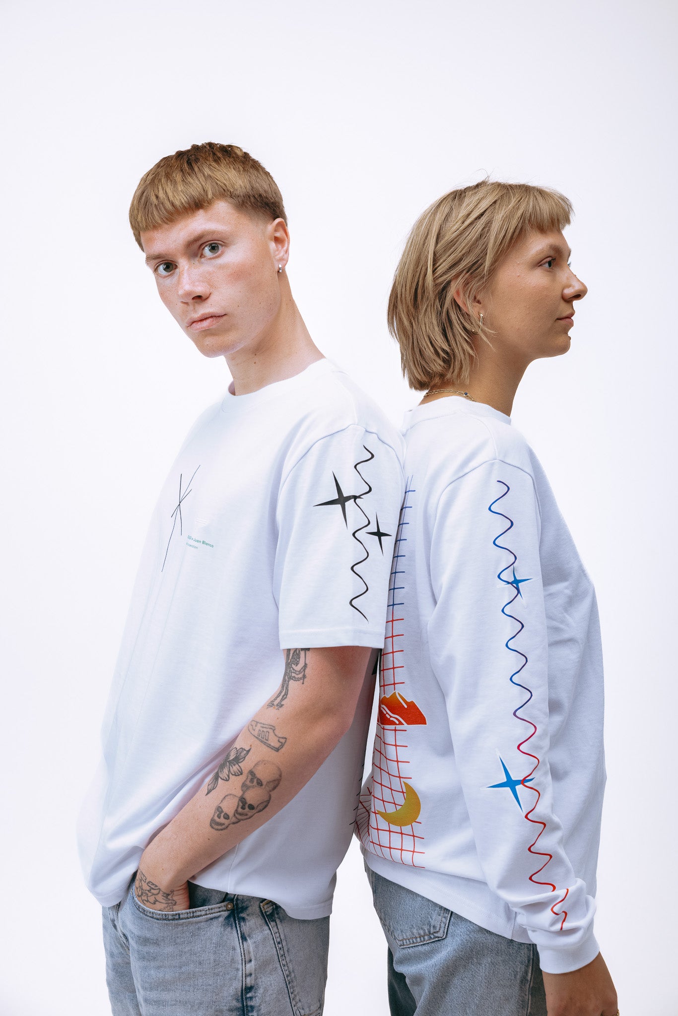 Wir kollaborieren mit zeitgenössischen Künstler:innen und Poet:innen und gestalten limitierte Shirts, die Gedanken und Perspektiven sichtbar machen. Jedes Projekt bringt eine neue ästhetische Sprache, ein unverwechselbares Motiv; eine individuelle Sicht auf die Welt.