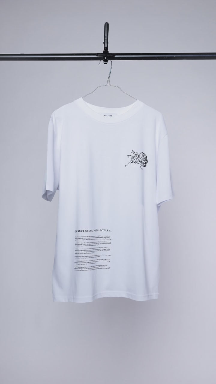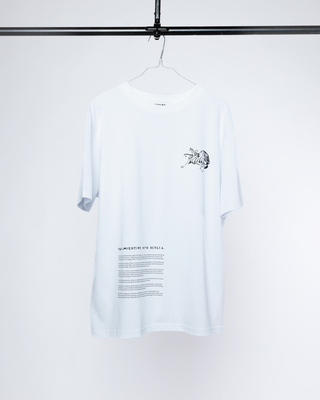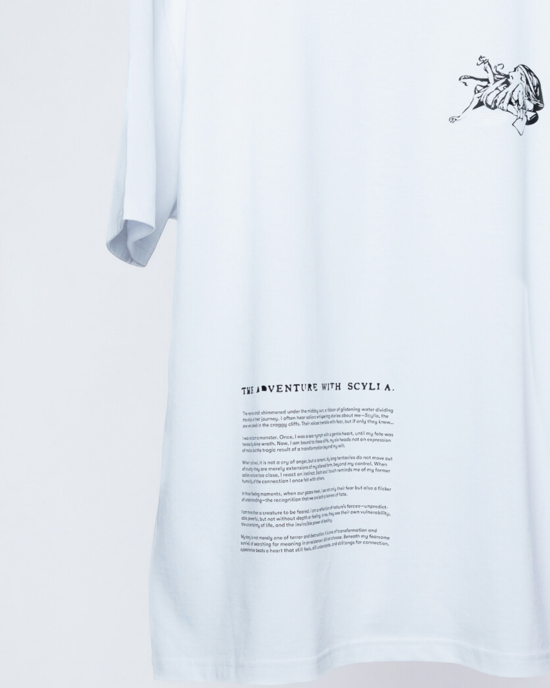 This T shirt tells the story of Skylla, once a sea nymph, now trapped in a form that is no longer her own. The design captures not just her shape, but a life caught between myth, vulnerability, and transformation.